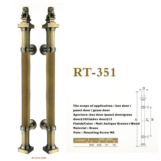 Raytel Antique brass Exquisite Sculptured Pull Handle for Front Door RT351